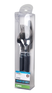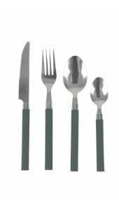 Een 4-delige bestekset. De ideale 1-persoons bestekset om mee te nemen op reis. Deze set bestaat uit een mes, vork, lepel en een theelepel.