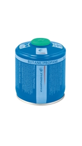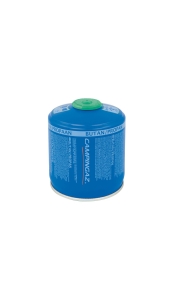 Een CV-300 Plus cartouche van Campingaz. Door de Easy-Clic aansluiting met ventiel is het mogelijk om tussentijds de cartouche te los te koppelen en later weer te gebruiken. De cartouche bestaat uit een combinatie van butaan- en propaangas waardoor deze ook functioneert bij lagere temperaturen en/of grote hoogten.