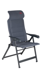 Deze Crespo campingstoel biedt maximaal comfort door de in 7 standen verstelbare rugleuning en een traploos verstelbare hoofdstuk.