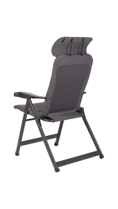 Een zeer luxe standenstoel met een verstelbare hoofdsteun. Deze stoel biedt maximaal comfort door de in 7 standen verstelbare rugleuning en de gepolsterde Tex Supreme stof. Deze comfortabele stof is zeer onderhoudsvriendelijk, bestand tegen verkleuring door de zon en waterafstotend. Hierdoor is de stoel veel sneller droog dan stoelen met een traditionele schuimvulling. Daarnaast zijn zowel de rugleuning , de zitting en de armleggers ergonomisch gevormd. De stoel is voorzien van een geanodiseerd H-frame voor extra stabiliteit en stevigheid.
